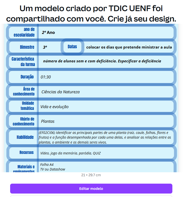 Você deve apenas pegar o que fez anteriormente e revisar. Mas, agora vamos pensar em Habilidade, Competência (BNCC) e Técnicas de Inclusão.
